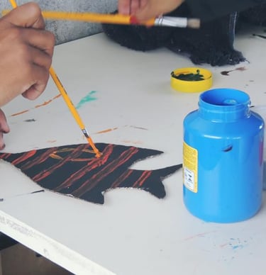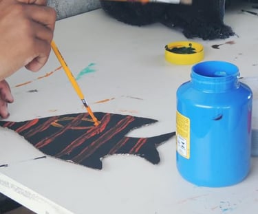 As crianças aprendem e se divertem quando faz trabalhos artísticos.